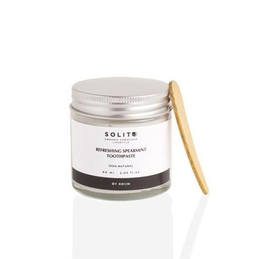 Las pastas de dientes SOLITO vienen presentadas en un tarro de vidrio con tapa metálica y caja de cartón. El packaging además está hecho con cartón biodegradable y con certificados FSC (bosques de tala controlada) y ECF (no han sido blanqueados con cloro).